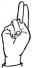 На ћирилици написано МИЛОМИРКА ШИРОЛА састоји се из 15 слова [?]. Исписано ћириличном једноручном азбуком за глувонеме: